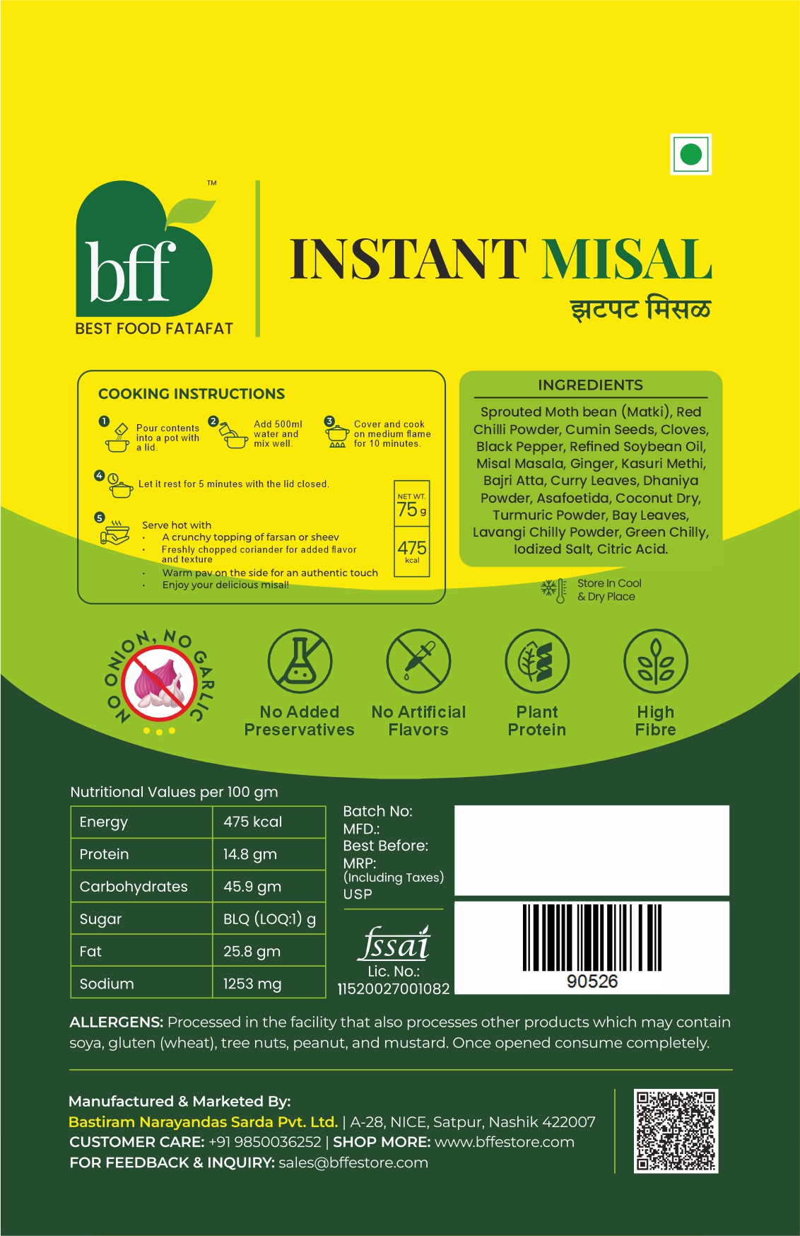 Experience the authentic taste of traditional Maharashtrian Misal with a modern, convenient twist – our Instant No Onion No Garlic Yellow Misal. Perfect for spiritual diets, Jain cuisine, or anyone seeking a wholesome, satvik meal without compromising on flavor.